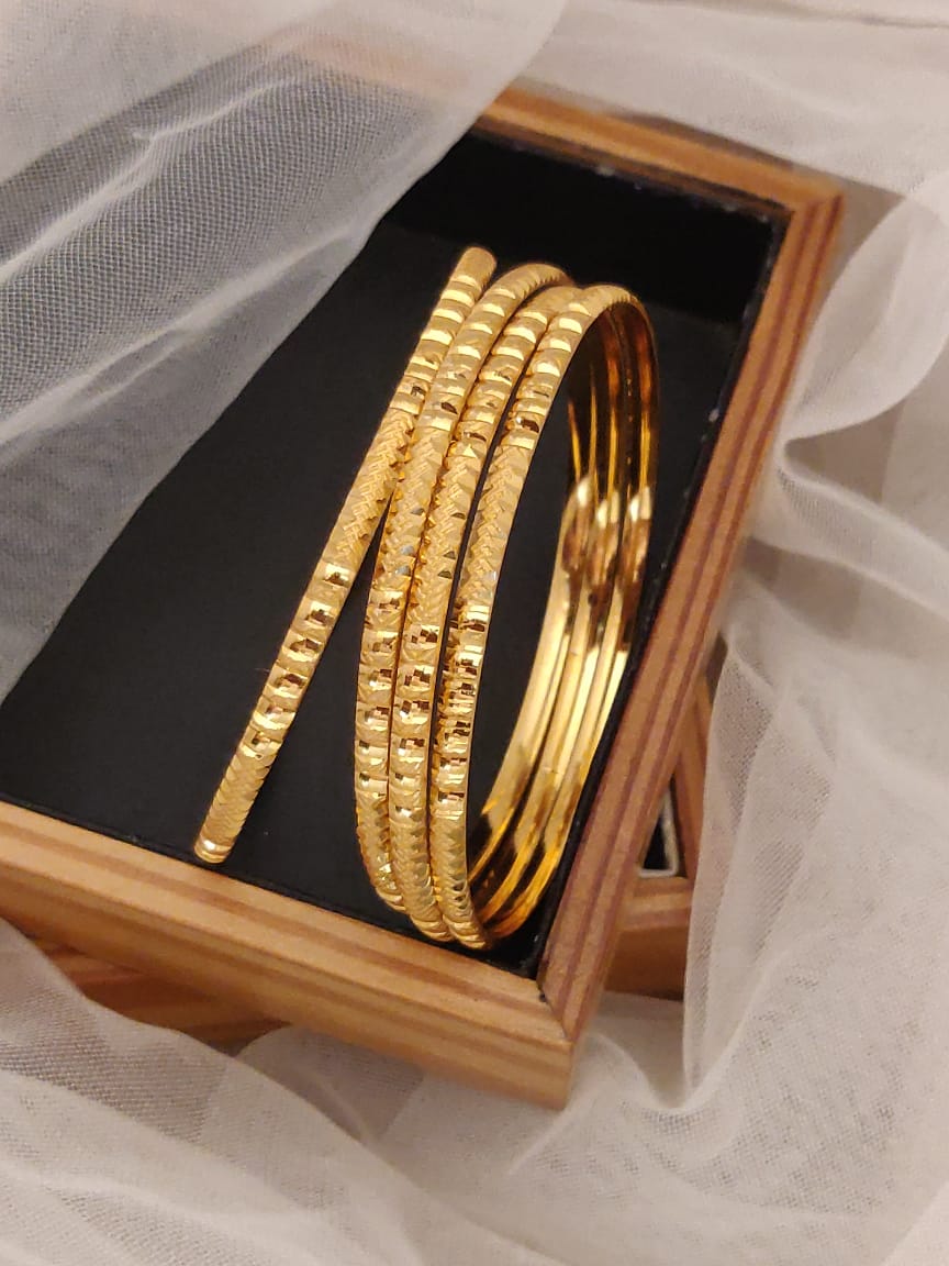 Assorted Diamond‑Cut Slim Bangles – Gold Polish (Set of 6)