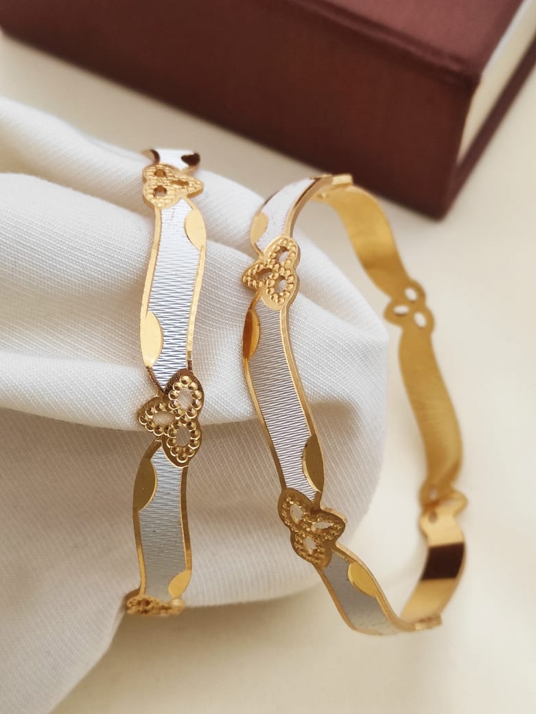 Clover Wave Dual‑Tone Bangles – Gold Polish with Rhodium Accents (Set of 2)