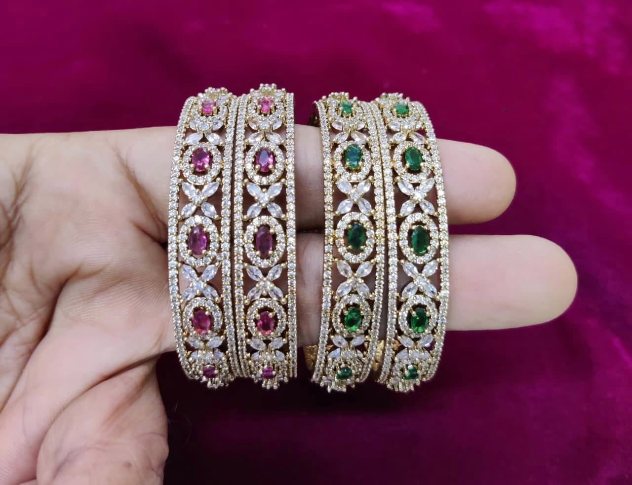 Luxury Kundan Bangles with Emerald & Ruby Stonework
